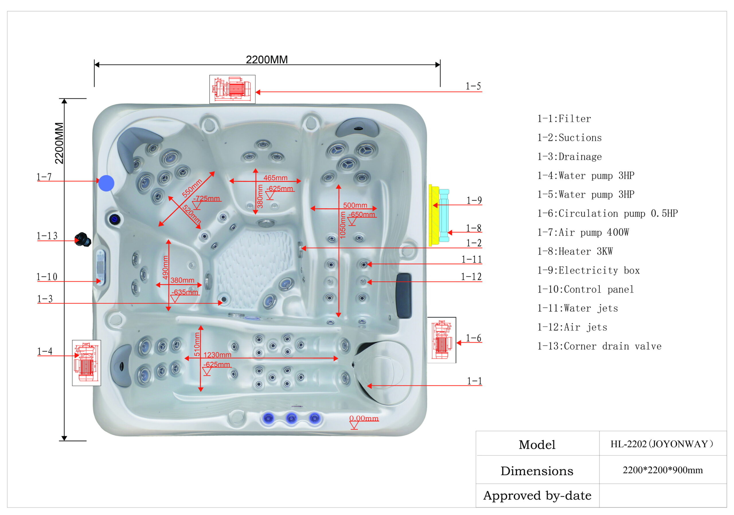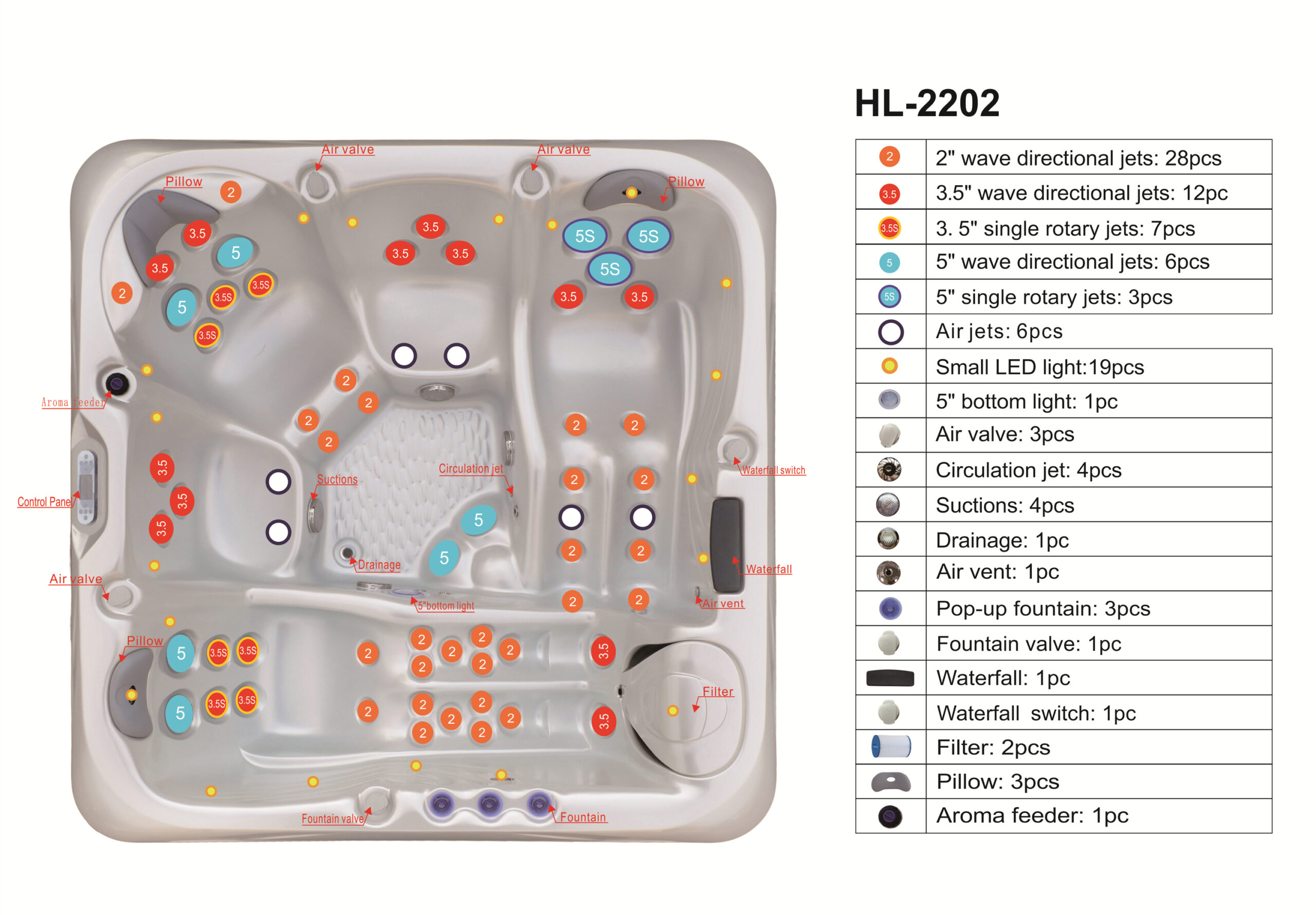 • Masažna pumpa: 2 x 2,2kw