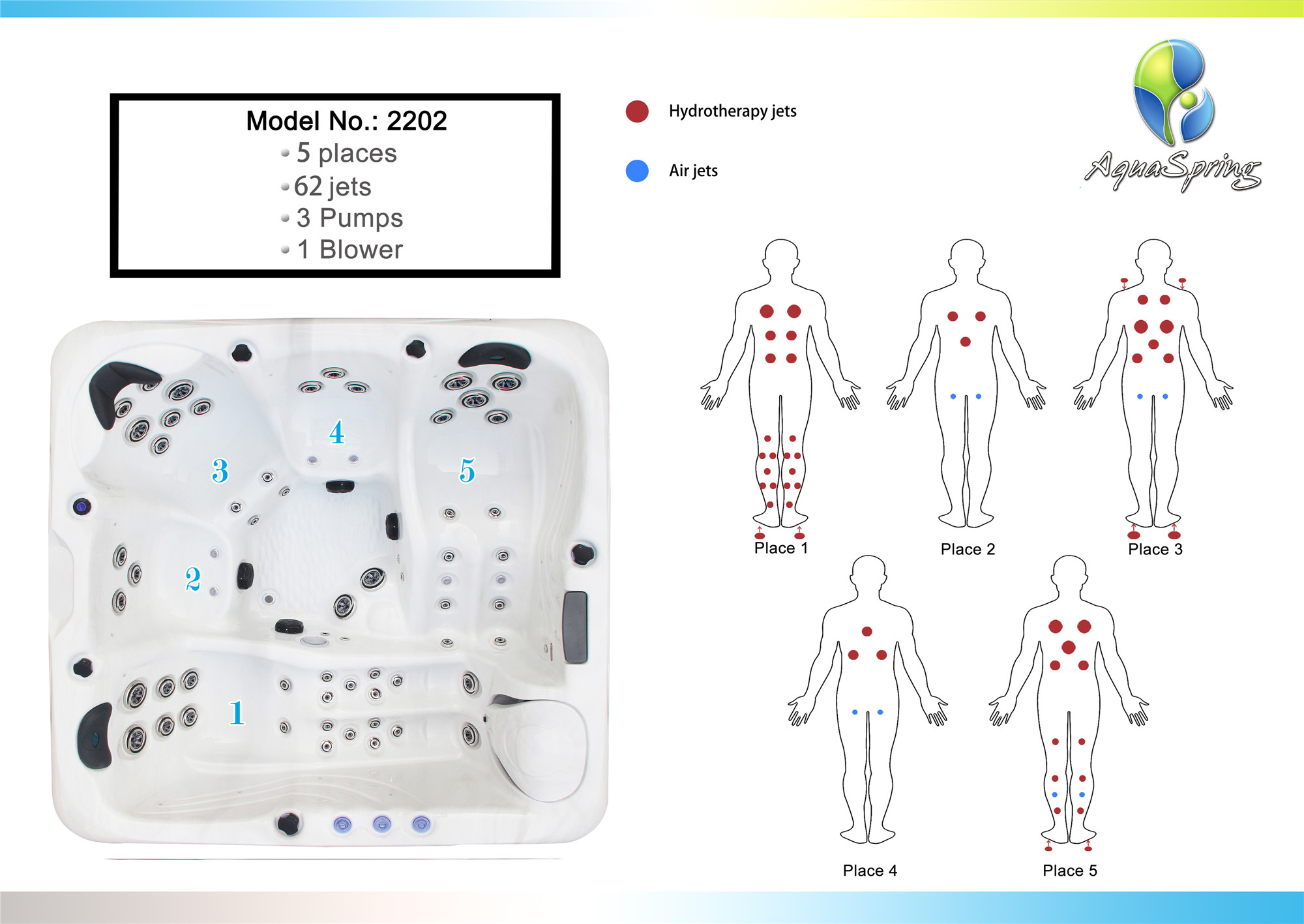 • Broj osoba: 5 masažnih mesta
